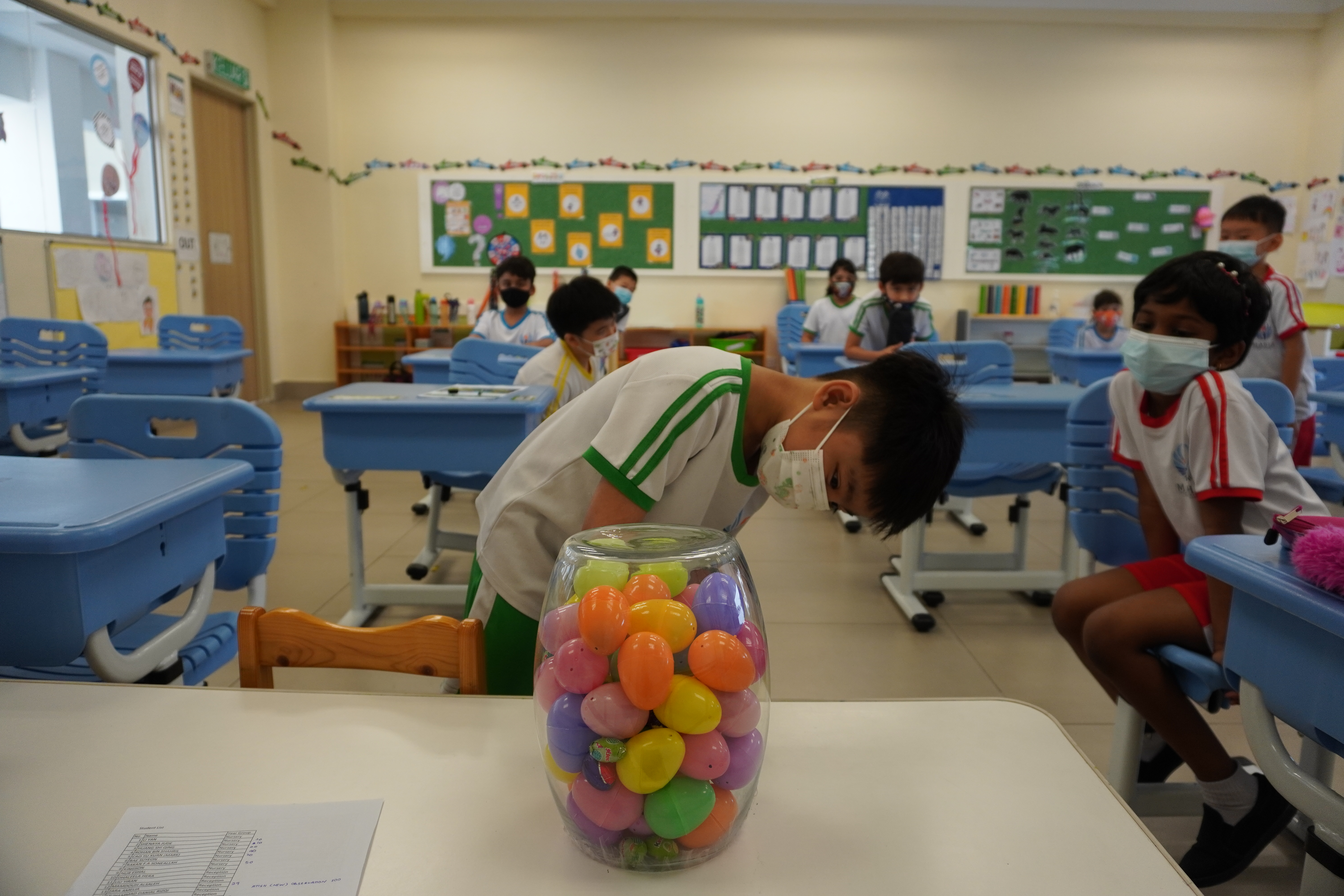 In conjunction with Easter week, MAHSA International School organized a simple Easter Egg Guessing Game for the Early Years and Primary Years to participate. This game will enhance their intuitive thinking that will help in math performance in children. The students enthusiastically looking at the jar to count and guess the number of eggs and the right answer will receive a gift.